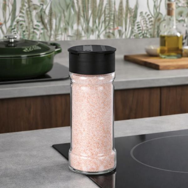 Sa transparence met naturellement en valeur la teinte rose irisée du sel et permet de contrôler facilement le niveau restant.